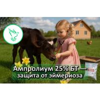 Лечим и защищаем: Ампролиум 25% БТ против кокцидиоза у телят, овец и птицыЭффективное лечение и профилактика эймериоза у птиц, телят и овец с Ампролиумом 25% БТ.