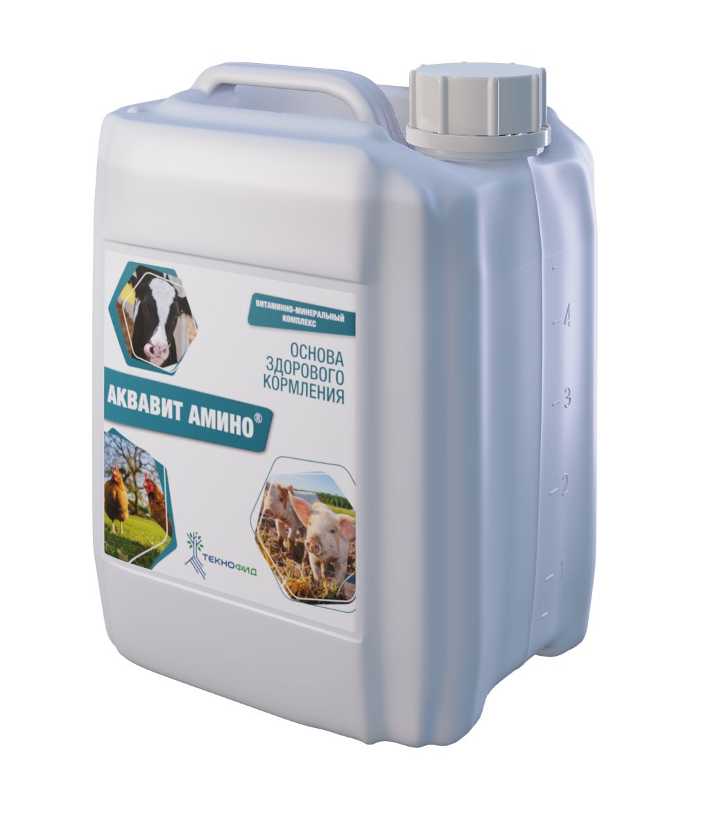 АкваВит Амино 5л/упаковка– жидкий поливитаминный комплекс, обогащенный незаменимыми аминокислотами. Препарат предназначен для нормализации обменных процессов, протекающих в организме животных, профилактики гиповитаминозов и повышению продуктивных показателей животных за счет активизации в организме анаболитических процессов.