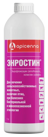 Энростин назначают с лечебной целью телятам, ягнятам, свиньям и сельскохозяйственным птицам при респираторных и желудочно-кишечных заболеваниях, колибактериозе, сальмонеллезе, стрептококкозе, некротическом энтерите, гемофилезе, микоплазмозе, смешанных и вторичных инфекциях при вирусных болезнях и других заболеваниях, возбудители которых чувствительны к энрофлоксацину и колистину.