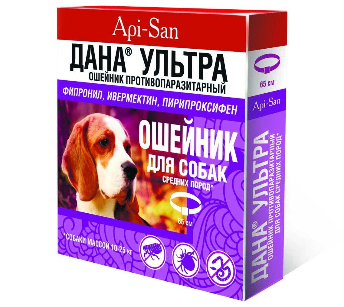 Ошейник Дана Ультра представляет собой комбинированный препарат с широким спектром активности против паразитических клещей, насекомых и круглых гельминтов мелких домашних животных. Фипронил и пирипроксифен оказывают длительное контактное инсекто-акрицидное и репеллентное действие на личиночные и половозрелые стадии развития блох, вшей, власоедов и иксодовых клещей