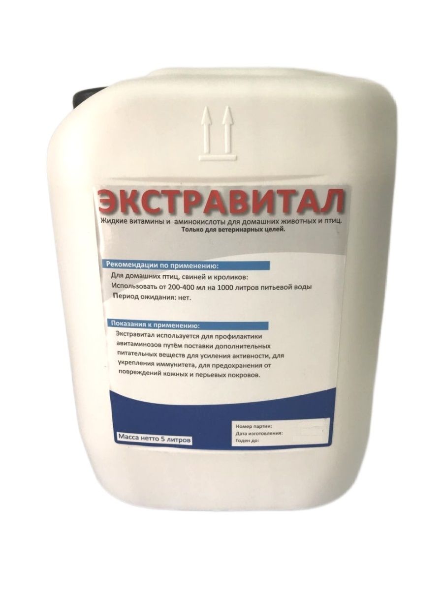 Нормы ввода: 200-400 мл на 1000 л воды. ЭКСТРАВИТАЛ совместим со всеми ингредиентами кормов,