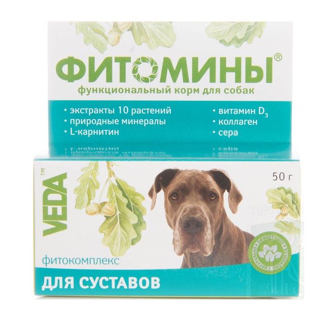 Назначение: Используют в качестве дополнительного функционального питания для коррекции и восполнения рациона кормления собак дефицитными микронутриентами растительного и минерального происхождения. Фитокомплекс, входящий в состав корма, регулирует синтез коллагена в организме, защищает и восстанавливает суставные поверхности, улучшает естественный обмен хрящевой ткани, способствует ее очищению и самовосстановлению, что снижает риск развития заболеваний суставов (артритов, артрозов, артропатий), воспалительных заболеваний сухожилий и сухожильных влагалищ; дисплазии. Фитомины рекомендуется включать в рацион кормления взрослых собак, подвергающихся регулярной перегрузке, а так же щенков крупных пород.