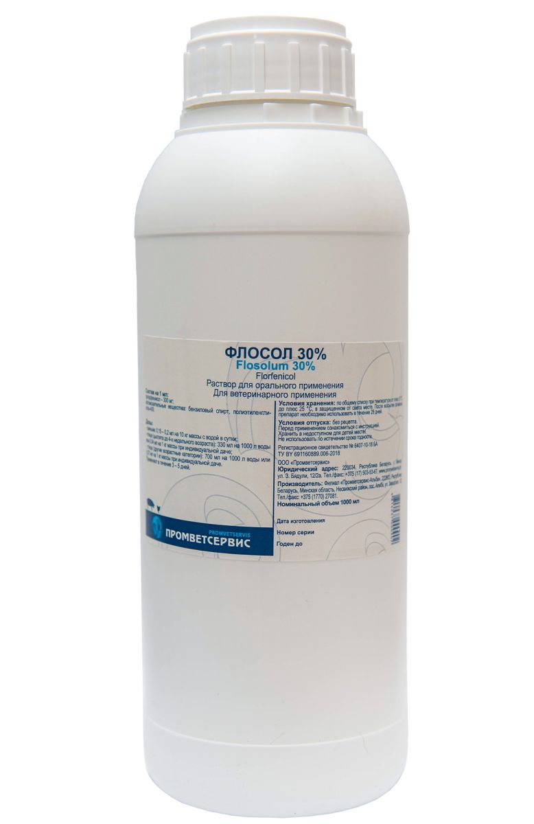 Флосол 30% применяют в качестве лечебно-профилактического средства при колибактериозе и сальмонеллезе, пастереллезе, микоплазмозе птицы; плевропневмонии, пастереллезе, бордетеллезе, гемофилезе свиней и других заболеваниях, вызванных возбудителями, чувствительными к флорфениколу.