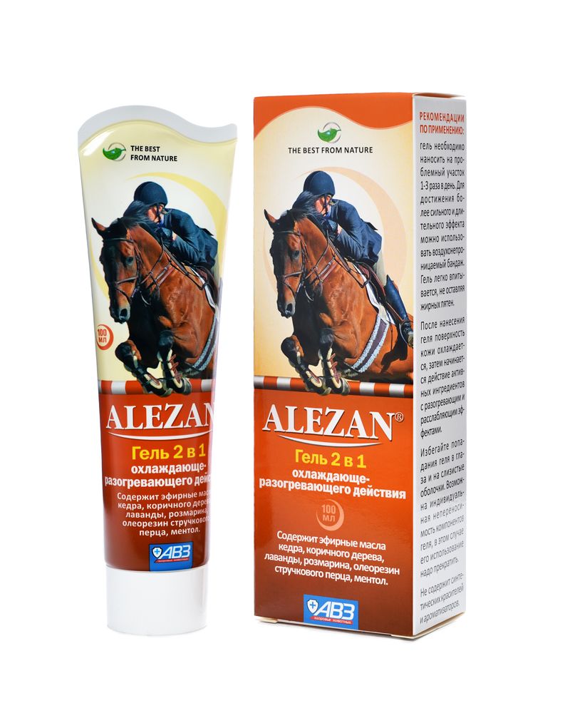 Косметико-гигиеническое средство для снятия болезненности, отеков и воспалений при растяжениях и ушибах. Применяется для создания сначала охлаждающего, затем согревающего эффекта в коже и подлежащих тканях, вызванного умеренно раздражающим действием, усилением микроциркуляции крови и лимфы, опосредованно оказывает благоприятное действие при миозитах, серозных лимфонодулитах, тендинитах и тендовагинитах, при невритах, радикулитах, плекситах, серознофиброзных синовитах, при ушибах, вывихах суставов, гематомах, растяжениях. Гель 2 в 1 Алезан охлаждающеразогревающего действия используют для снижения синдромов боли и воспаления при травмах, ускорения выведения молочной кислоты из мышц после физических нагрузок. Состав: