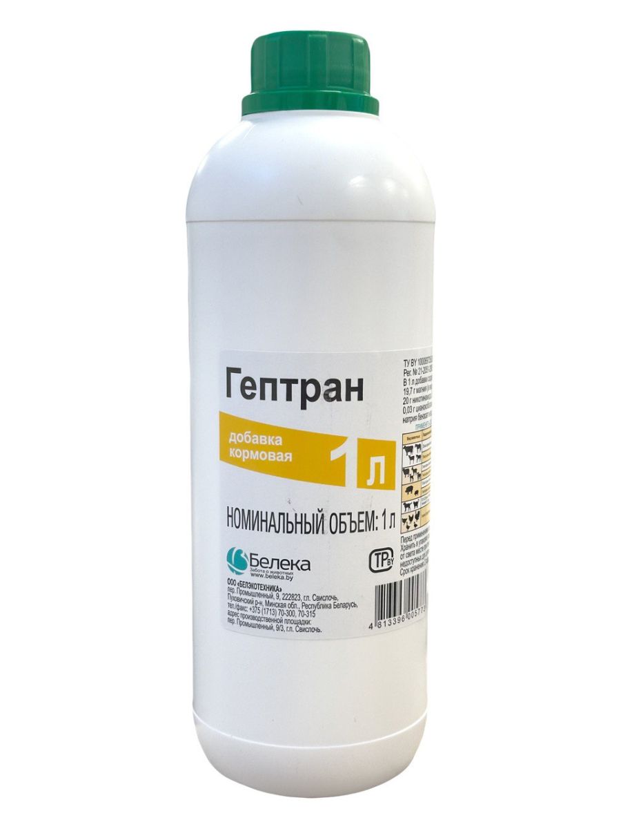 «Гептран» применяют групповым или индивидуальным методом, перорально. Смешивая с водой или поливая поверх корма.
