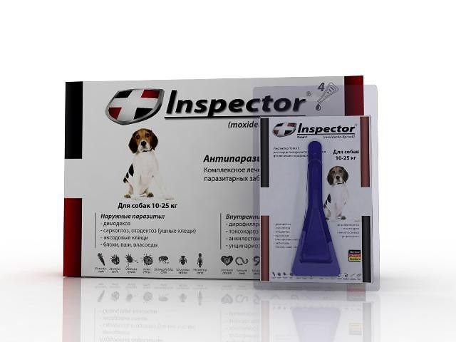 Инспектор Тотал С обладает широким спектром противопаразитарного действия, активен в отношении паразитирующих у собак демодекозных (Demodex canis), саркоптоидных (Sarcoptes canis), отдекозных (Otodectes spp.) и иксодовых (Ixodes spp.) клещей, блох (Ctenocephalides spp.), вшей (Linognathus spp.), власоедов (Trichodectes spp.), личиночных и половозрелых фаз развития кишечных нематод, включая (Тохосаra spp., Toxascaris leonina, Ancylostoma spp., Uncinaria spp., Trichuris spp.), а также личиночных форм сердечных гельминтов (Dirofilaria immitis).