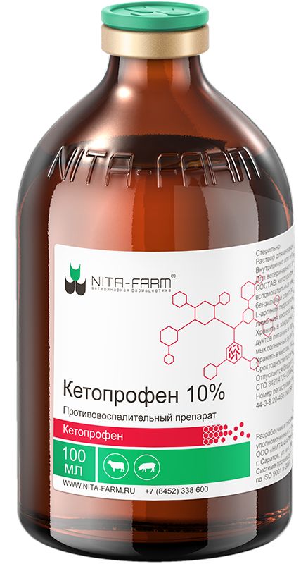 Кетопрофен 10% вводят животным парентерально в дозе - 3 мл на 100 кг массы животного (эквивалентно 3 мг кетопрофена на 1 кг массы животного) ежедневно, 1 раз в сутки в течение 1-3 дней;