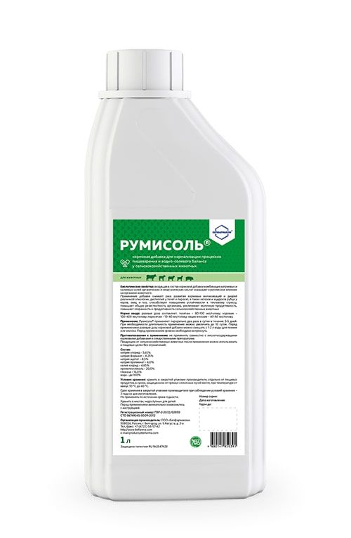Входящая в состав Румисоли комбинация натриевых и калиевых солей органических и неорганических кислот, пропиленгликоля и глюкозы оказывает комплексное влияние на организм животного. Катионы натрия и калия поддерживают осмотическое давление в клетках тканей, регулируют водно-электролитный баланс, предупреждая обезвоживание организма, участвуют в передаче импульсов, создают оптимальную буферную среду. Анионы муравьиной, пропионовой и уксусной кислот создают благоприятные условия для развития полезной молочнокислой микрофлоры и снижают уровень патогенной микрофлоры в корме и желудочно-кишечном тракте животных, стимулируют процессы пищеварения и молокообразования.