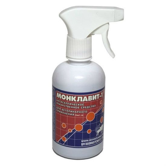 Монклавит-1 проявляет резко выраженные бактерицидные, фунгицидные и антивирусные свойства, обладает десенсибилизирующим, противовоспалительным и регенерирующим действием. Обладает высокой активностью в отношении грамотрицательных и грамположительных микроорганизмов, патогенных грибов и дрожжей: Salmonella, Pasteurella, Streptococcus, Escherichia coli, Proteus vulgaris, Aeromonas hydrophila, Pseudomonas aeruginosa, Pseudomonas anguilliseptica, Staphylococcus aureus, Candida albicans, Malassezia pachydermatis, Aspеrgillus fumigatus, Aspergillus niger, Penicillium granulatum, Fusarium graminearum, Trihophyton mentagrophytes, Flavobacterium psychrophillum, Moraxella osloensis, Microsporum canis, Micoplasma и др. Не вызывает привыкания (резистентности) у болезнетворной микрофлоры в процессе длительного применения. Препарат не обладает местно-раздражающим действием, токсичностью, аллергенностью, мутагенностью, иммунодепрессивностью, тератогенностью и канцерогенностью.