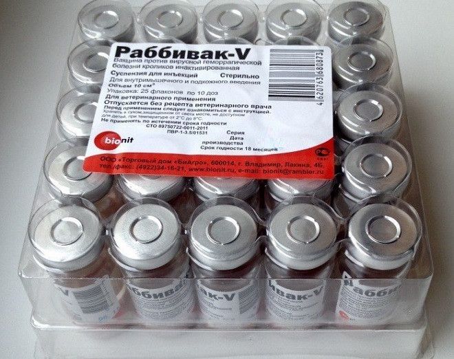 Раббивак-V вводят кроликам однократно в 1 дозе (1 мл) внутримышечно в заднюю часть бедра или подкожно с соблюдением правил асептики и антисептики. При использовании многоразовых шприцев и игл, их необходимо стерилизовать кипячением в течение 15-20 минут без применения каких-либо химических средств.