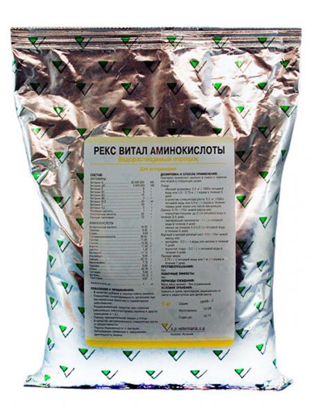 Рекс Витал Аминокислоты 1кг в упаковке - водорастворимый порошок для орального применения для всех видов животных и птиц.