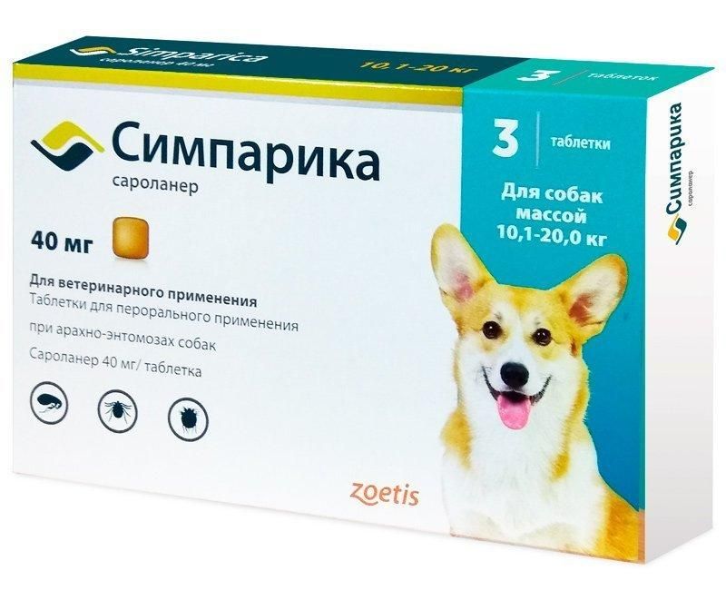 Симпарика таб 40 мг 10-20кг, 3 таб/упак