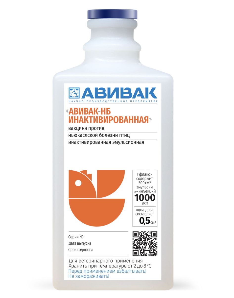 Вакцина против ньюкаслской болезни птиц инактивированная эмульсионная. Вакцина изготовлена из экстраэмбриональной жидкости эмбрионов СПФ-эмбрионов кур, инфицированных вирусом ньюкаслской болезни (штамм «Ла-Сота»), инактивированной формальдегидом, с добавлением масляного адъюванта, состоящего из медицинского белого масла и фармакопейных эмульгаторов на основе сложных эфиров карбоновых кислот. По внешнему виду вакцина представляет собой однородную эмульсию белого цвета. При хранении допускается незначительное расслоение эмульсии без отделения водной фазы. Однородность эмульсии восстанавливается при тщательном взбалтывании. Вакцина расфасована по 500 см3 (1000 прививных доз) в полимерные флаконы.