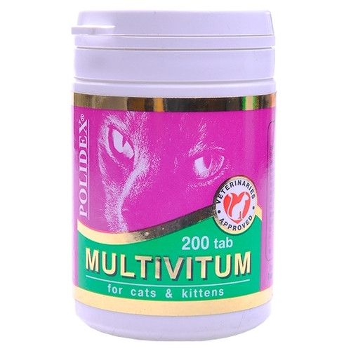 Задают кошкам внутрь индивидуально из расчета 1 таблетка на 1 кг веса животного 1 – 3 раза в сутки непосредственно на корень языка или с небольшим количеством корма. Препарат используют курсами 2 – 3 месяца (весной и осенью), а также постоянно в течение года с перерывами на 1 – 2 месяца. Полидекс Мультивитум сочетается с готовыми кормами.